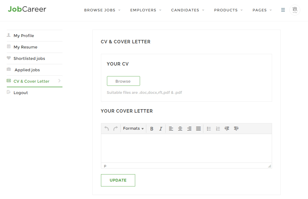 You can either upload the jobcareer.zip from your downloads on Theme Forest after purchase or upload the unzipped theme files to your WordPress Themes folder over FTP.